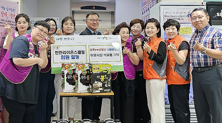 국제라이온스협회 354-G지구 한란라이온스클럽(회장 김정림)은 최근 회원들과 함께 노형동에 위치한 노형주민센터의 나눔 내장고 '솜뽁살레'에 식료품을 전달했다.