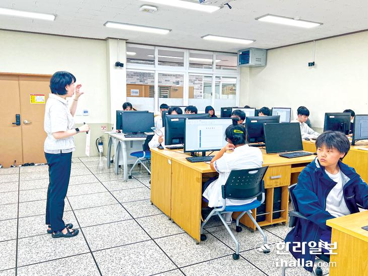 지난달 '2025 AI 진로성장 캠프'에서 한림공고 학생들이 프로그램에 참여하고 있다.