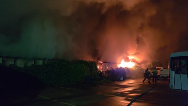 15일 새벽 2시 12분쯤 서귀포시 토평동의 한 창고에서 화재가 발생했다. 제주소방안전본부 제공
