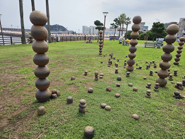 [한라일보] 서귀포 자구리공원에 여러 개의 돌탑이 쌓여있다. 한 도예가가 버려진 돌을 하나하나 쌓여올려 만든 도자 설치작품들이다.