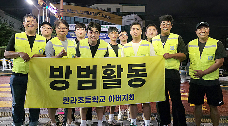 [한라일보] 한라초등학교(교장 오상남) 아버지회(회장 김대진)는 지난 16일 학교 주변에서 학생들의 일탈 행위를 예방하기 위한 야간방범 활동을 전개했다.