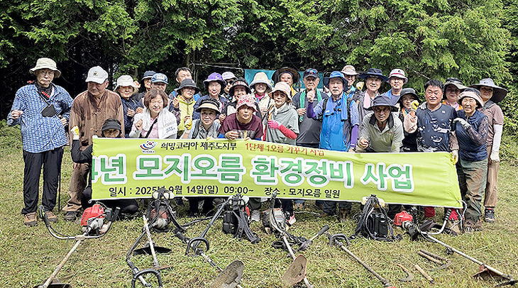 희망코리아 제주도지부(회장 오충남)는 지난 14일 회원 30여 명이 참석한 가운데 제주시 표선면 모지오름에서 진입로 정비 및 풀베기 작업을 실시했다.