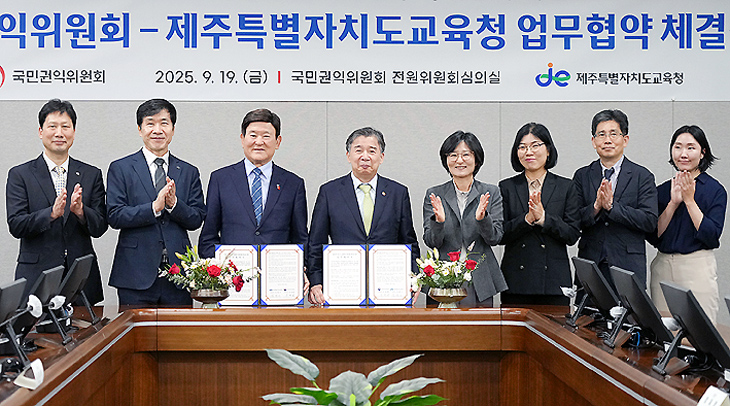 [한라일보] 제주도교육청은 지난 19일 국민권익위원회 전원위원회 심의실에서 국민권익위원회와 '청렴인재 양성과 교육현장 청렴문화 확산을 위한 업무협약'을 체결했다.