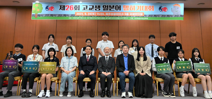 주제주일본국총영사관은 제주특한일친선협회·NPO법인 오이타현 해외교육지원기구와 공동으로 지난 20일 제주상공회의소에서 '제26회 고교생 일본어 말하기 대회'를 개최했다. 이날 '마음을 잇는 나의 마법'을 주제로 발표한 애월고 조하율 학생이 최우수상을 수상하는 등 총 6명이 입상했다.
