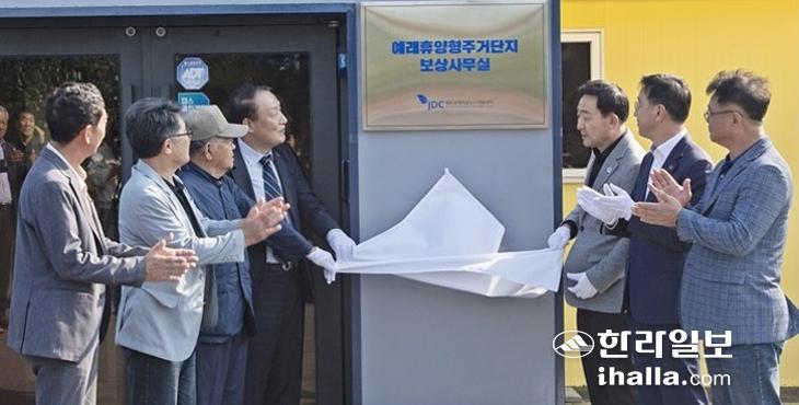 ▶관광·휴양서 도시개발로 변화 시도=JDC는 대법원 판결로 방치된 예래휴양형 주거단지 조성사업장을 폐기하는 대신 아예 새로운 사업으로 탈바꿈하기로 했다. 이른바 새판짜기에 돌입한 것이다. 이를 위해선 우선 토지 문제부터 풀어야 했다. 대법원의 토지수용 재결 무효 판결로 사업 부지에 속한 65만6000㎡의 토지 소유권은 원래 토지주에게 돌아갔기 때문이다. JDC는 토지 문제를 풀기 위해 지난 2023년 10월 26일 예래휴양형주거단지 부지 옛 현장사무실을 토지 보상 사무실로 개편했다.