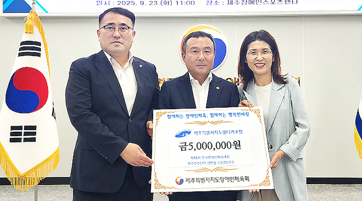 이날 전달된 기부금은 다음 달 부산에서 개최되는 '제45회 전국장애인체육대회'에 출전하는 제주 장애인선수단의 격려를 위해 쓰일 예정이다.