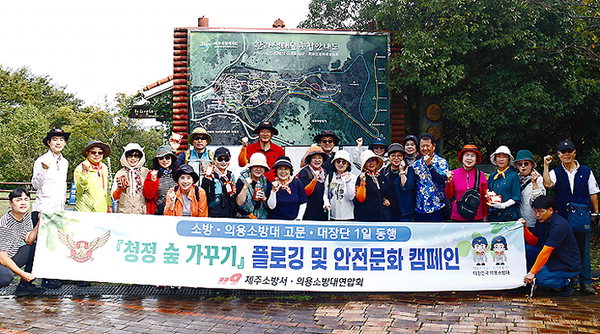 [한라일보] 제주소방서(서장 전철하)는 24일 제주소방서 의용소방대연합회(회장 김영종)와 고문협의회(회장 김종희) 회원 30여 명과 함께 한라생태숲을 찾은 탐방객들을 대상으로 안전문화 확산 캠페인을 실시했다.