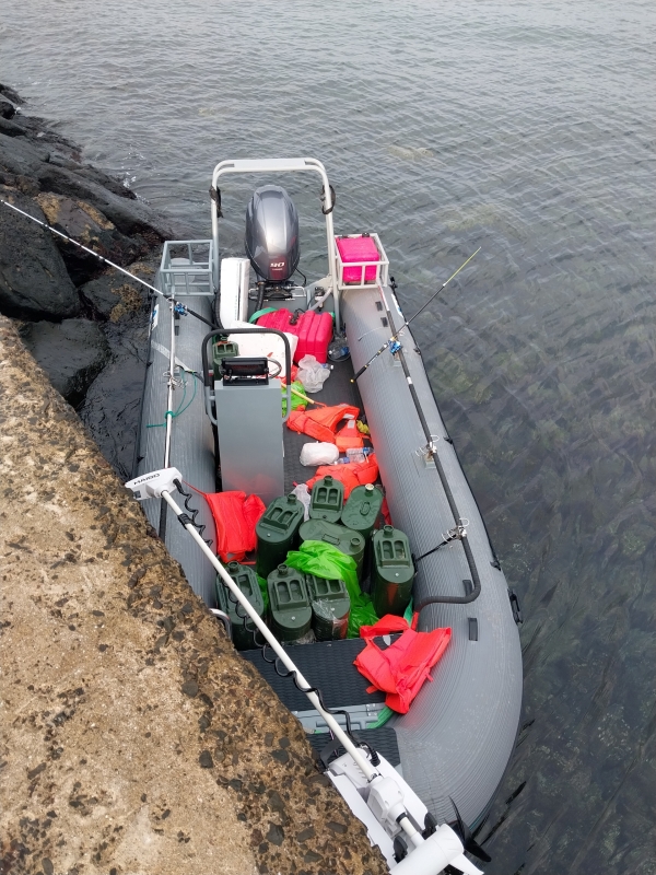 지난 8일 오전 7시 56분쯤 한경면 용수리 해녀탈의장 인근 해안에서 발견된 미확인 고무보트. 한라일보DB