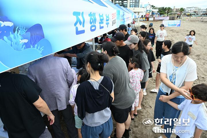 제3회 제주바다그리기대회가 27일 제주시 이호동 이호테우해수욕장과 서귀포시 안덕면 용머리해안 일대에서 일제히 막을 올렸다. 강희만기자