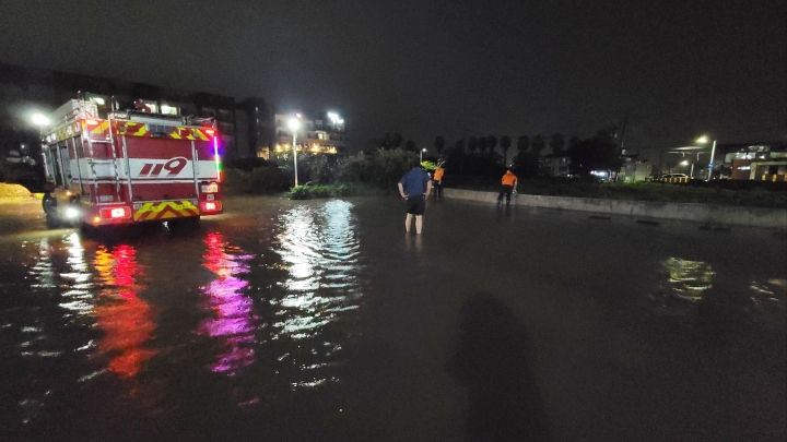 28일 오전 제주시 도두1동에서는 주차장이 침수돼 소방이 배수 조치에 나섰다. 제주소방안전본부 제공