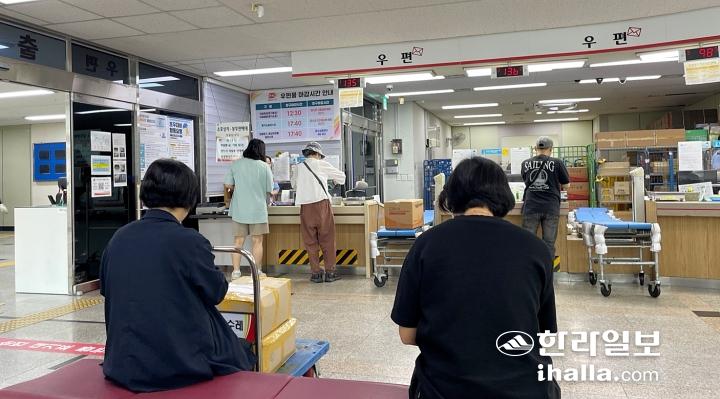 이에 추석 연휴 내로 물품을 보내고자 방문한 시민들 일부는 발걸음을 돌려야 했다.