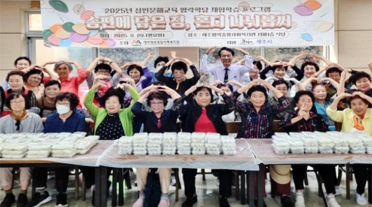 제주영락종합사회복지관(관장 이상언)은 다가오는 한가위를 맞아 29일 성인문해교육 체험학습 프로그램으로 참가한 학습자 어르신들과 함께 '송편에 담은 정, 혼디 나누봅써'라는 송편 만들기 행사를 진행했다.