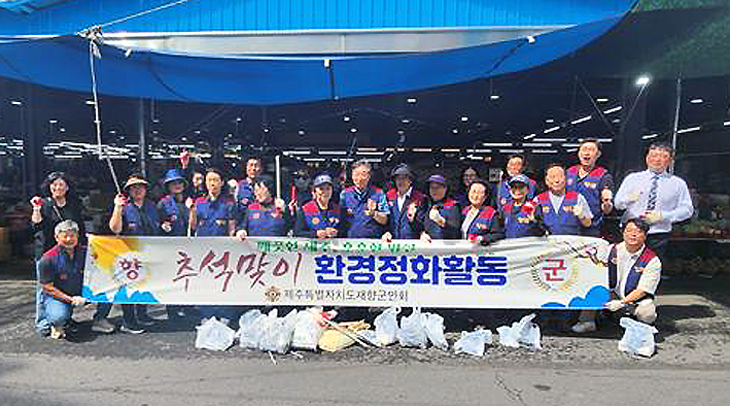 제주도재향군인회(회장 김달수)는 지난달 28일 서귀포시 중문향토오일장에서 추석을 맞아 향군 국토대청결 활동의 일환으로 환경정화활동을 전개했다.