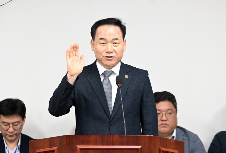 2일 열린 제주자치도의회 인사청문회에서 선서하는 최명동 제주에너지공사 사장 후보.