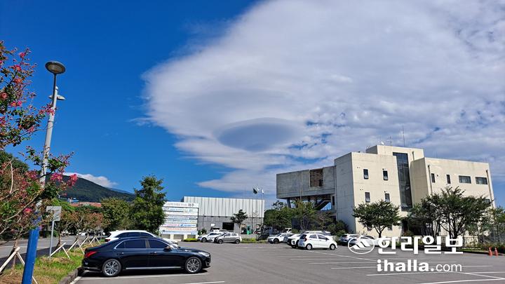 [한라일보] 저기압 영향으로 내리던 비가 그친 4일 서귀포시지역에 렌즈구름(렌즈운)이 관측됐다.