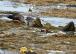 해양쓰레기 더미서 먹이 찾는 흰뺨검둥오리
