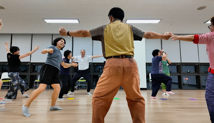 지난 13일 밤 서귀포시 대정읍에 있는 서귀포시 서부종합사회복지관에서 열린 무용 기반 건강프로그램 '춤추는 나, 건강한 몸' 참여한 지역주민들. 제주시니어댄스예술교육원 제공