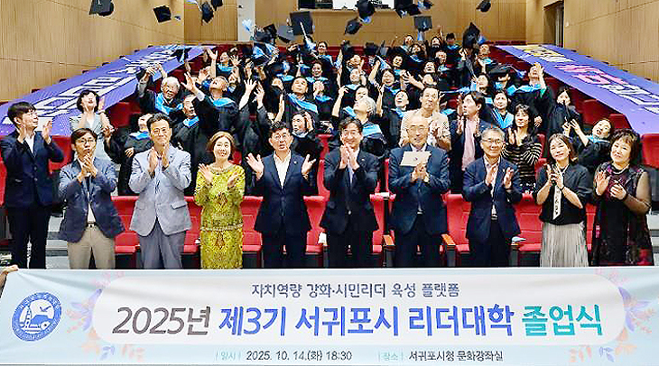 [한라일보] 서귀포시는 지난 14일 별관 2층 문화강좌실에서 '제3기 서귀포시 리더대학' 졸업식을 개최했다.