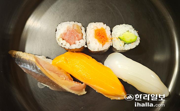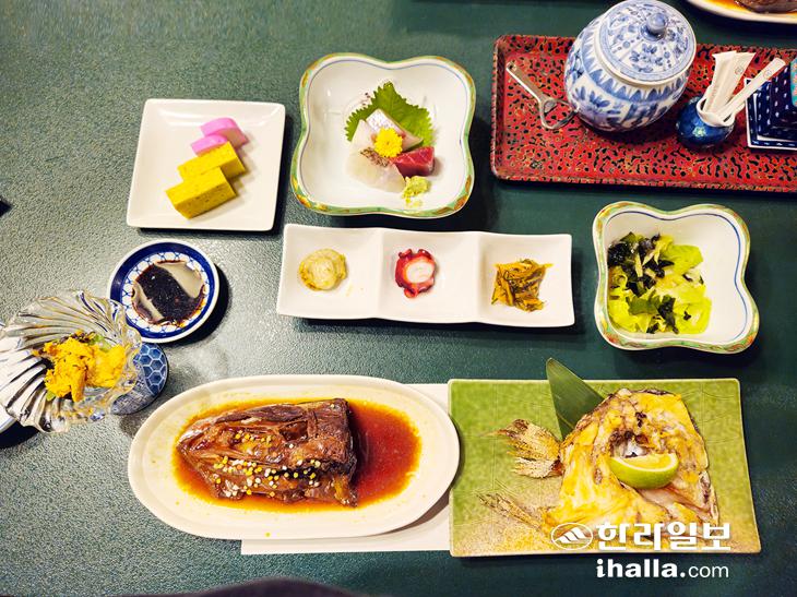 아오모리의 해산물 식사. 도미와 방어, 참치와 가리비가 포함됐다.