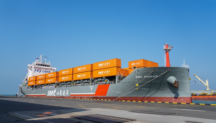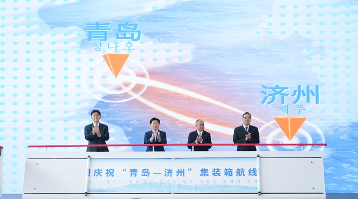 이날 취항식을 시작으로 산둥항만장비그룹이 제작한 컨테이너선 ‘SMC 르자오’호는 제주~칭다오 뱃길을 오가며 양 지역 화물을 실어 나른다.