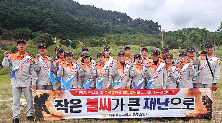 동부소방서 의용소방대연합회(회장 김성수)는 지난 21일 조천읍 함덕리 서우봉 둘레길 일대에서 가을철 산불예방 캠페인을 전개했다.