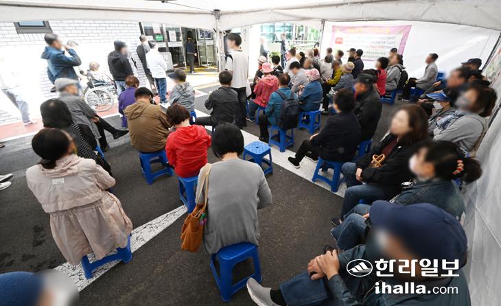 [한라일보] 독감 인플루엔자 예방접종을 하려는 어르신들이 23일 제주시보건소를 찾아 순서를 기다리고 있다. 강희만기자