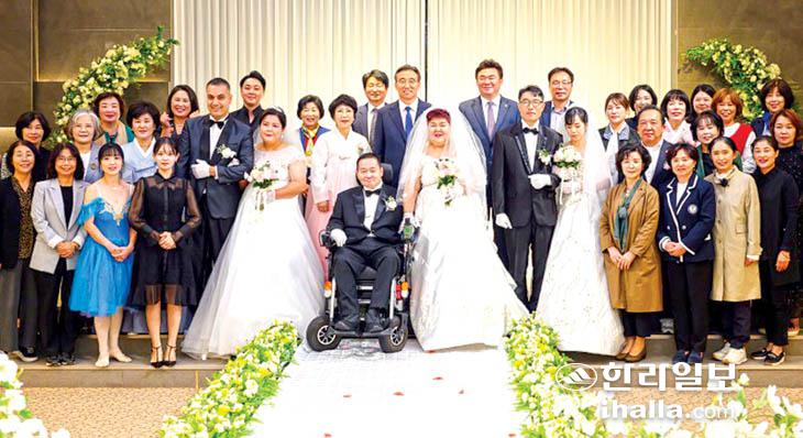 저소득·장애인·다문화 가정 3쌍의 동거부부를 위해 서귀포시장애인자립생활센터, 대한미용사회 서귀포시지부 등 관련 기관·단체들이 재능 나눔과 실비지원으로 화장, 예복, 기념사진 등을 지원했다.