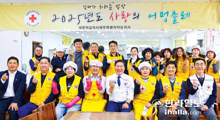 노형적십자봉사회(회장 임정옥) 및 소속봉사원 이상봉 의원은 지난 28일 제주적십자사(회장 정태근) 맛 나눔터에서 '사랑의 어멍촐레 밑반찬 만들기 봉사활동'을 실시해 도내 취약계층 100여 가구에게 돼지고기김치찌개와 멸치꽈리고추볶음 등을 전달했다.