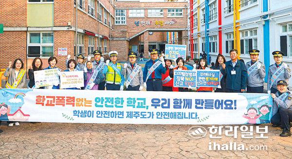 [한라일보] 제주경찰청(청장 고평기)은 29일 학생의 안전한 등굣길을 위한 학교폭력 예방과 교통안전 등 학교안전 합동캠페인을 실시했다.