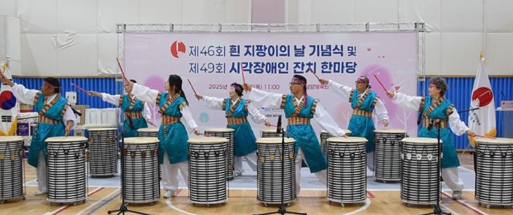 시각장애인 '눈(目)소리 난타공연단'은 최근 열린 제46회 흰지팡이의 날 기념식에서 '아리랑'과 '사랑의 트위스트' 곡에 맞춘 흥겨운 난타 공연을 선보였다.