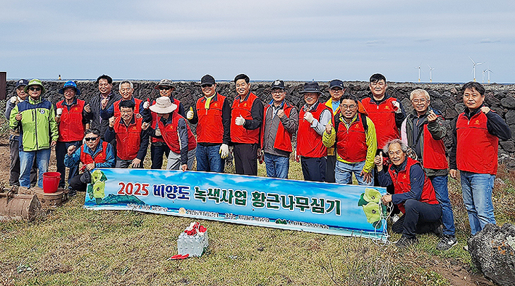 한림로타리클럽(회장 고창문), 비양리마을회(이장 고성민), (사)제주생명의숲(이사장 고윤권)은 지난달 30일 회원 및 마을주민 30여 명이 참여한 가운데 기후변화에 따른 대응사업의 일환으로 팔랑못 주변에 환경부 2급보호수종 황근나무를 식재해 탄소상쇄숲 동산을 조성했다.