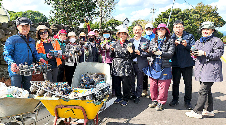 제주시 애월읍 어음1리부녀회(회장 허민희)는 2일 마을회 노인회 청년회 등과 함께 밭담길 축제기간에 맞춰 2000여 개의 다육이를 마을 내 밭담에 심었다.