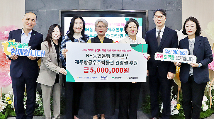 [한라일보] 초록우산 제주본부(본부장 김희석)는 지난달 29일 NH농협은행 제주본부(본부장 고은정)로부터 제주항공우주박물관 관람권 지원을 위한 성금 500만원을 전달받았다.