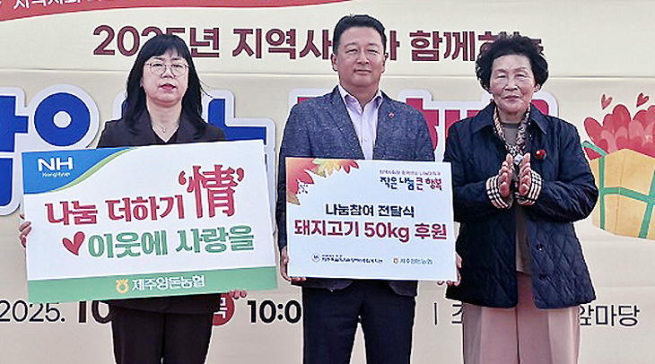 제주양돈농협(조합장 고권진)은 지난달 30일 '지역사회와 함께하는 나눔대축제, 작은 나눔 큰 행복' 행사에 참여해 돼지고기 50㎏을 기부했다.