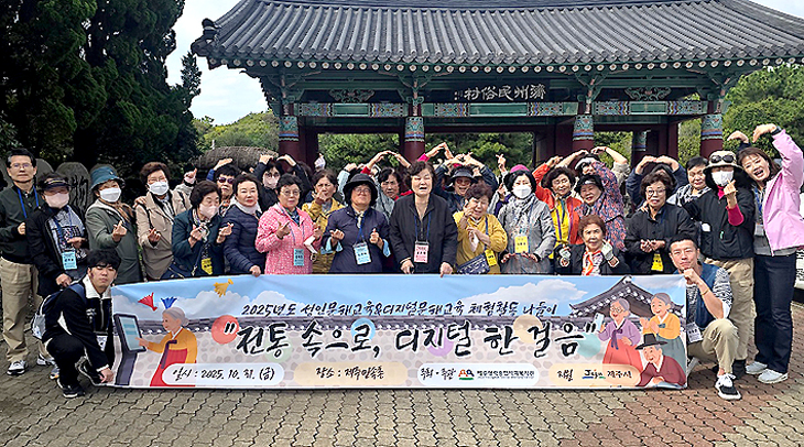 제주영락종합사회복지관(관장 이상언)은 지난달 31일 2025년 성인문해디지털교육 학습자들 대상으로 체험활동 나들이 '전통 속으로, 디지털 한 걸음' 프로그램을 실시했다.