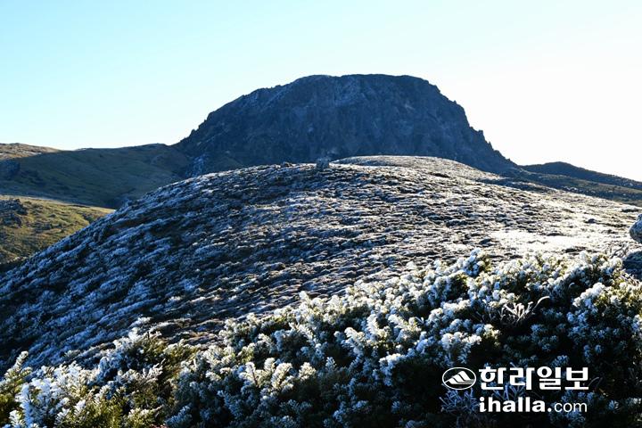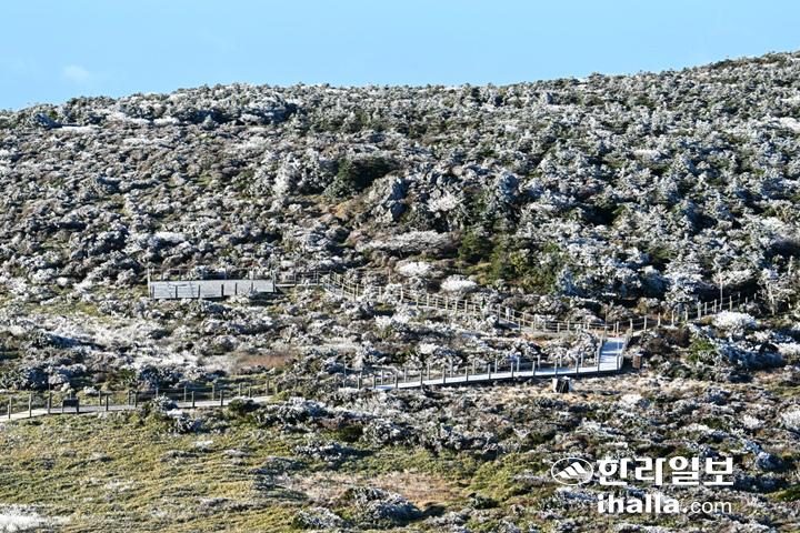 찬 공기가 내려오면서 아침 기온이 영하로 떨어진 3일 한라산 높은 산지에 상고대가 활짝 피었다. 강희만 기자