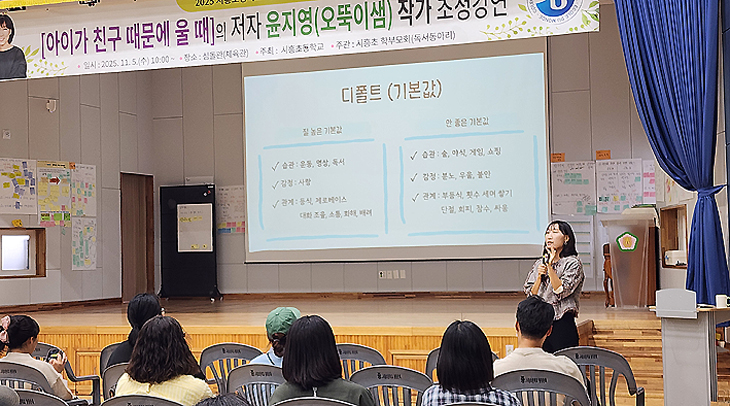 시흥초등학교(교장 고기수)는 지난 5일'윤지영 작가를 초청해 '아이가 친구 때문에 울 때' 강연을 개최했다.