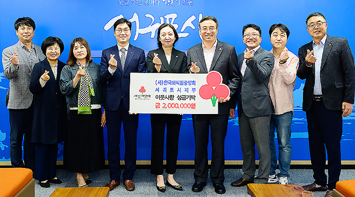 한국외식업중앙회 서귀포시지부(지부장 이분여)는 최근 '2025년 문화의 달 행사·서귀포칠십리 축제'에서 전통음식 부스를 운영해 얻은 수익금에 임원들의 기부금을 보태 서귀포시에 이웃돕기 성금 200만원을 기탁했다.
