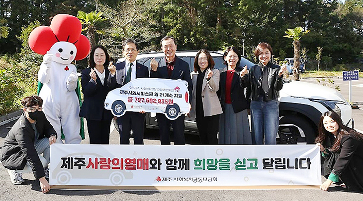 제주사회복지공동모금회(회장 강지언)는 지난 6일 '제주사랑의열매 사회복지현장 서비스 효율화를 위한 인프라 지원사업 차량분야' 전달식을 가졌다.