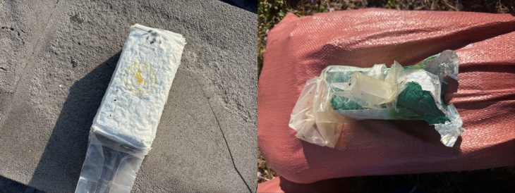 제주시 용담포구(왼쪽)와 구좌읍 동복리에서 발견된 마약류. 제주해경 제공