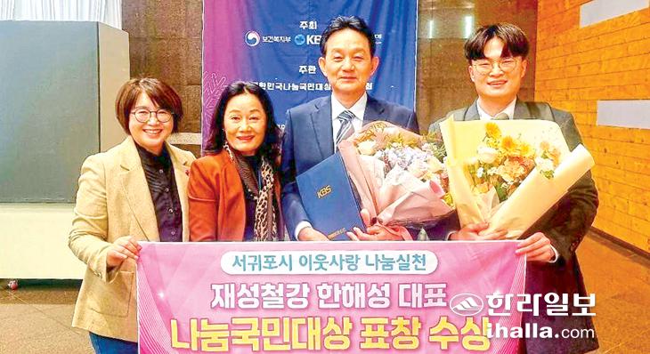 서귀포시는 재성철강 한해성 대표가 지난 6일 KBS 본사에서 열린 '2025년 나눔국민대상 시상식'에서 민간단체장 대표 수상자로 표창(KBS사장 표창)을 수상했다고 10일 밝혔다.