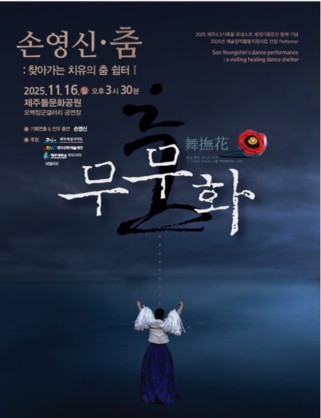 [한라일보] '손영신·춤: 찾아가는 치유의 춤 쉼터 I - 무무화(舞撫花)'가 오는 16일 오후 3시30분 제주돌문화공원 오백장군갤러리 공연장에서 열린다.