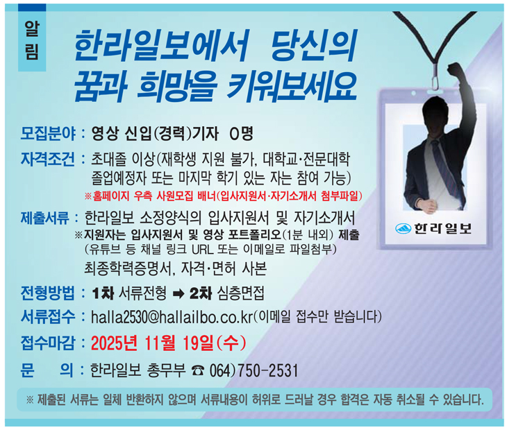 [알림] 한라일보에서 당신의 꿈과 희망을 키워보세요(영상기자 모집)