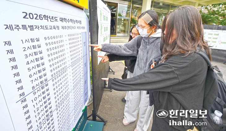 고사장 확인하는 수험생들.