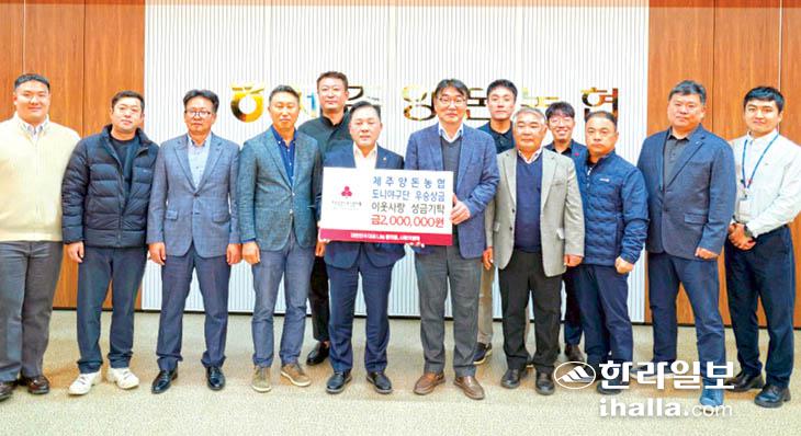 제주양돈농협 제주도니야구단(단장 고권진 조합장)은 지난 11일 농협 본점에서 농협중앙회장배 농축협 야구대회 우승상금 200만원을 제주사회복지공동모금회(회장 강지언)에 기탁했다.