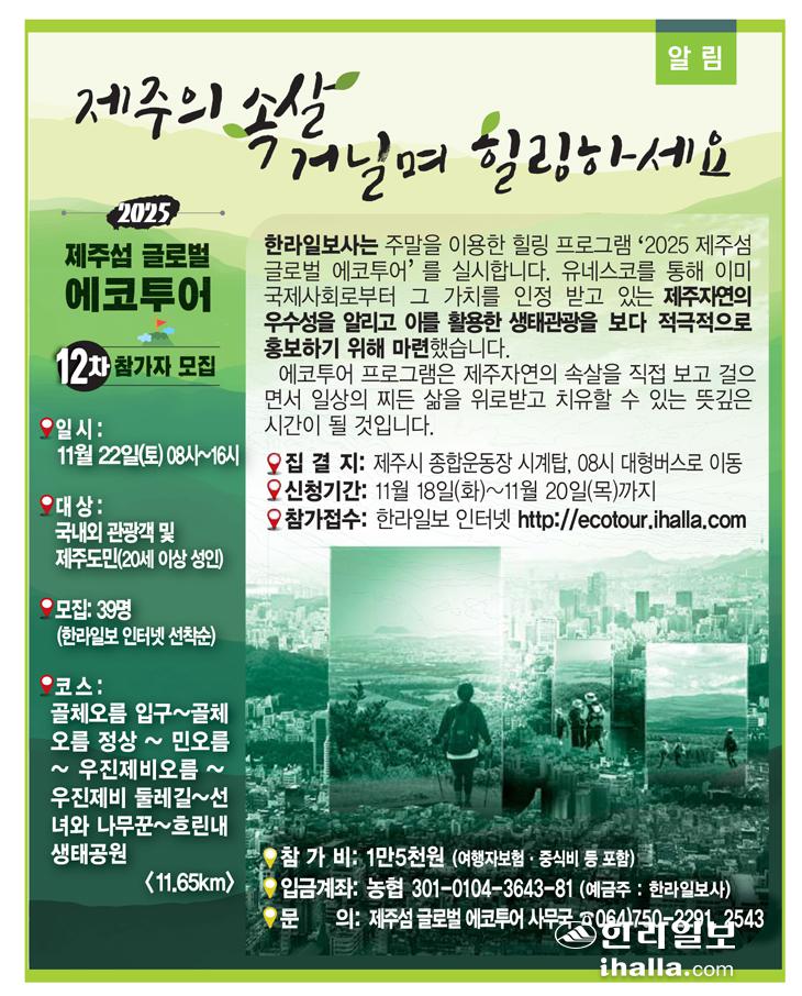 [알림] '2025 제주섬 글로벌 에코투어' 12차 참가자 모집