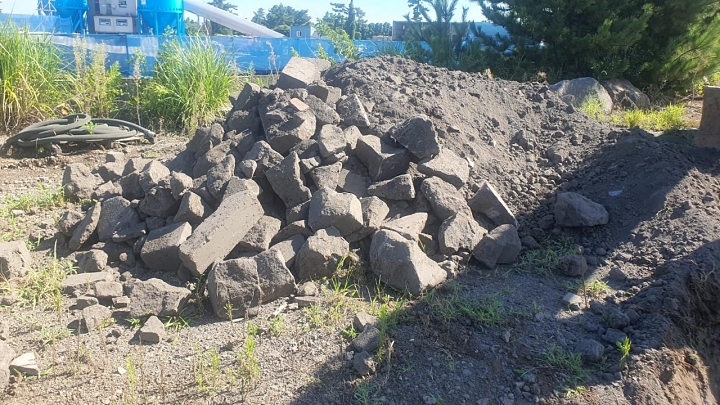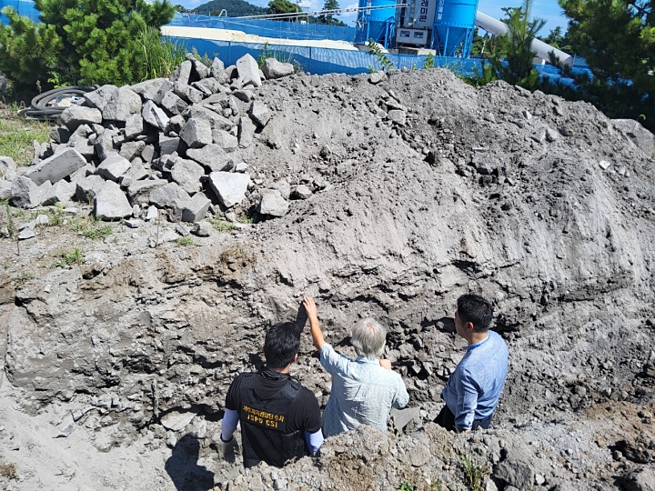 석재품 제조업체 대표 A(70대)씨가 폐석재 등을 불법으로 매립한 현장을 제주자치경찰단이 수사하고 있다. 제주자치경찰단 제공
