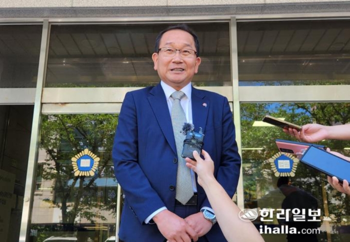 법원 나서는 강병삼 전 제주시장. 한라일보DB