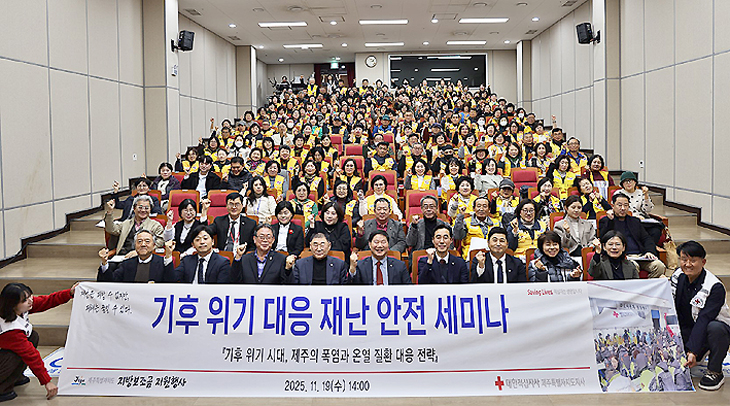 대한적십자사 제주특별자치도지사(회장 정태근)는 지난 19일 제주특별자치도 노동자종합복지관에서 기후위기 선제적 대응을 위한'기후위기 대응 재난 안전 세미나'를 개최했다.