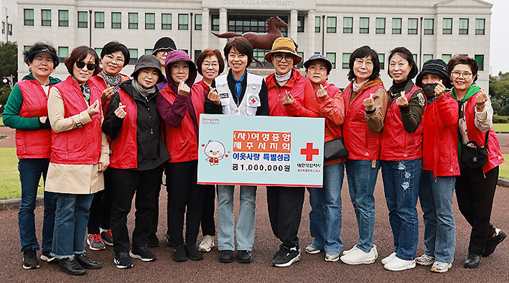 (사)여성중앙제주시지회(회장 김경애)는 최근 도움이 필요한 이웃들에게 따뜻한 손길을 전하고자 대한적십자사 제주특별자치도지사(회장 정태근)에 이웃사랑 특별성금 100만원을 전달했다.